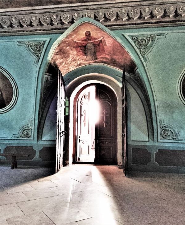 «Когда совершалось всенощное бдение в святой гробнице, находящейся во Влахернах, отправился туда и блаженный Андрей... Был там также юноша Епифаний, который всегда молился с особенным рвением. Около 11 часов увидел блаженный Андрей Пресвятую Богородицу, появившуюся со стороны Царских Ворот с грозной свитой. В ее числе были и досточтимый Предтеча, и Сыны Грома, держащие Богородицу под руки с обеих сторон, и многие другие святые, облаченные в белое, шествовали пред Нею, а иные следовали за Нею с гимнами и песнопениями духовными. И вот, когда они приблизились к амвону, подошел блаженный Андрей к Епифанию и говорит: «Видишь ли ты Госпожу и Владычицу мира?» Он же ответил: «Да, отец мой духовный». И они видели, как Богородица, преклонив Свои колени, долго молилась, прося за стоящих вокруг людей. И когда Она окончила молитву, сняла с Себя мафорий, и, взяв его Своими пречистыми руками, распростерла над всеми стоящими в храме. И в течение долгого времени видели Андрей и Епифаний покров Богородицы, который был распростерт над народом и излучал славу Божию».
