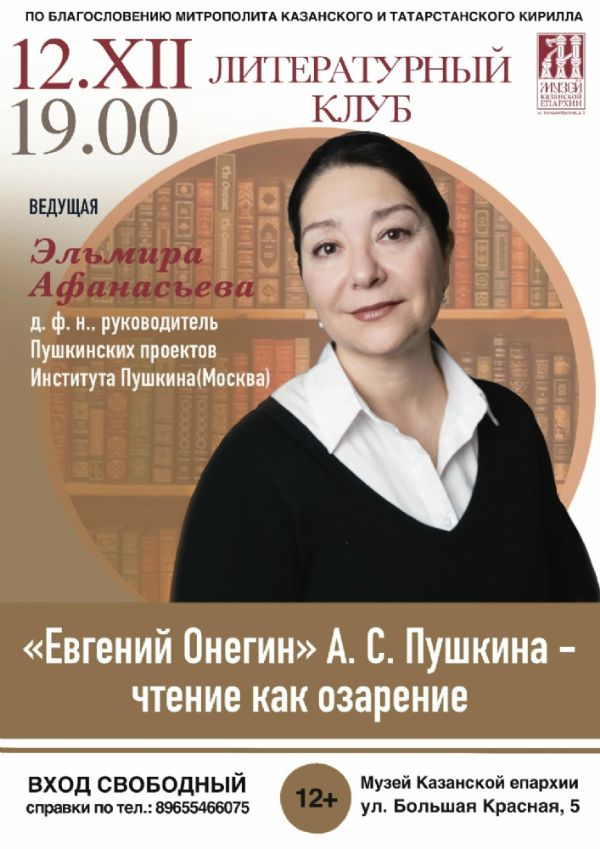 Очередная встреча нашего клуба посвящена роману в стихах, который стал своего рода «золотым сечением» литературной классики. Погрузиться в глубину пушкинского романа в стихах нам поможет Афанасьева Эльмира Маратовна, доктор филол. наук, литературовед, профессор кафедры мировой литературы Государственного института русского языка им. А.С. Пушкина (г. Москва).