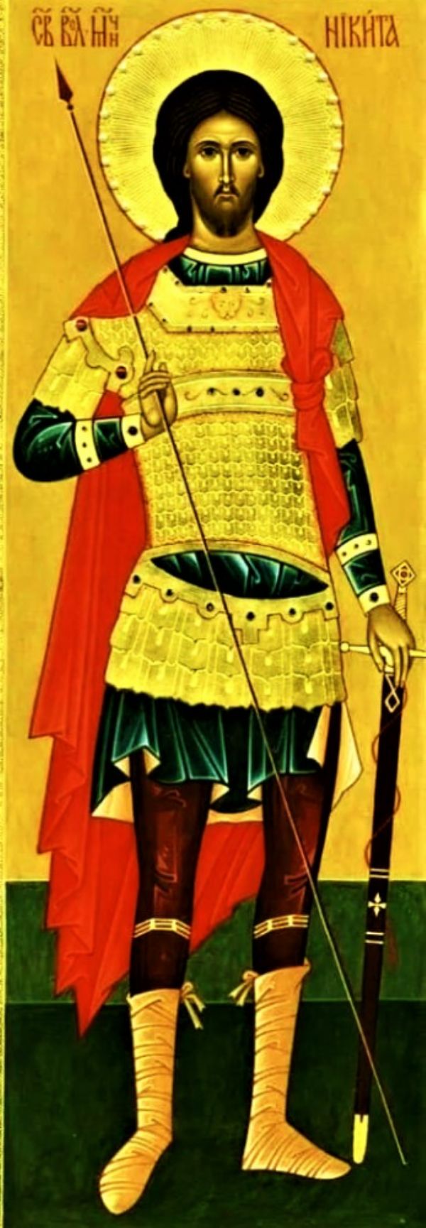 Му́ченик Твой, Го́споди, Ники́та/ во страда́нии свое́м вене́ц прия́т нетле́нный от Тебе́, Бо́га на́шего:/ име́яй бо кре́пость Твою́,/ мучи́телей низложи́,/ сокруши́ и де́монов немощны́я де́рзости./ Того́ моли́твами// спаси́ ду́ши на́ша.