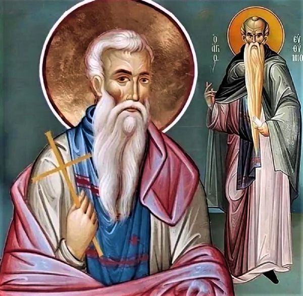 Преподобный Евфимий Новый, Солунский, в миру Никита, был уроженцем города Анкиры в Галатии. Родители его, Епифаний и Анна, вели добродетельную христианскую жизнь, и сын их с детства был кротким, честным и послушным. Семи лет он остался без отца и вскоре стал опорой матери во всех делах. Пройдя воинскую службу, Никита по настоянию матери женился. После рождения дочери он тайно оставил дом, чтобы поступить в монастырь. 15 лет преподобный Евфимий подвизался на горе Олимп, где научился у старцев монашеским подвигам.
